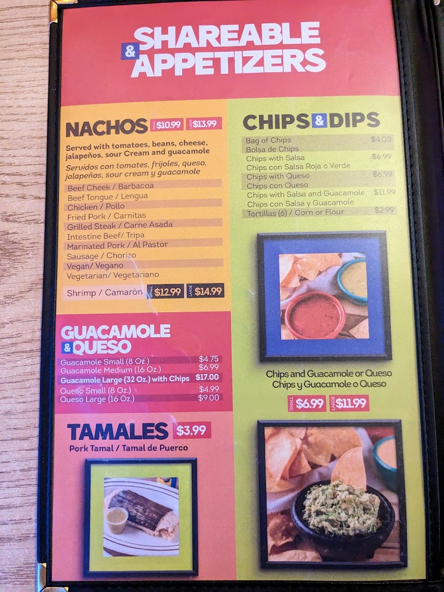 guacamole or cheese and chips